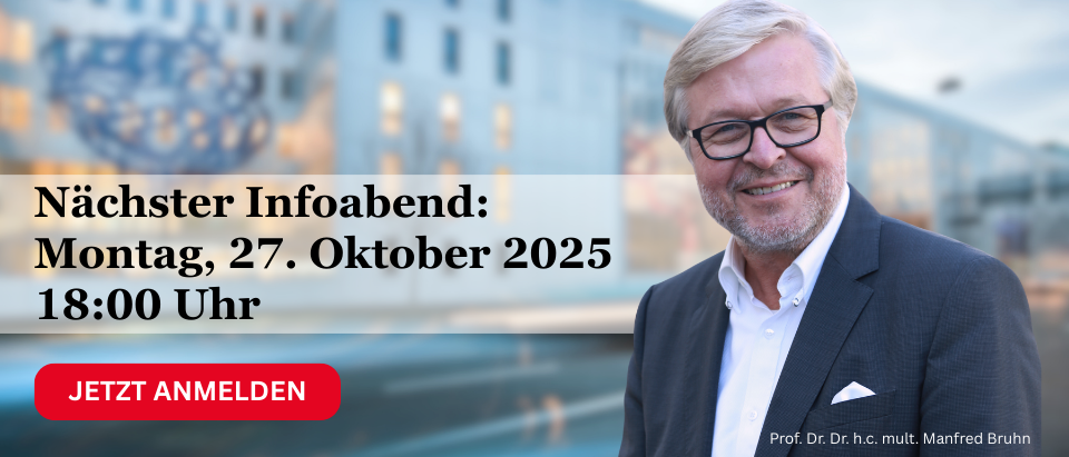 Lernen Sie unser berufsbegleitendes MBA-Programm kennen: wahlweise im digitalen Infoabend oder in einem persönlichen Beratungsgespräch.